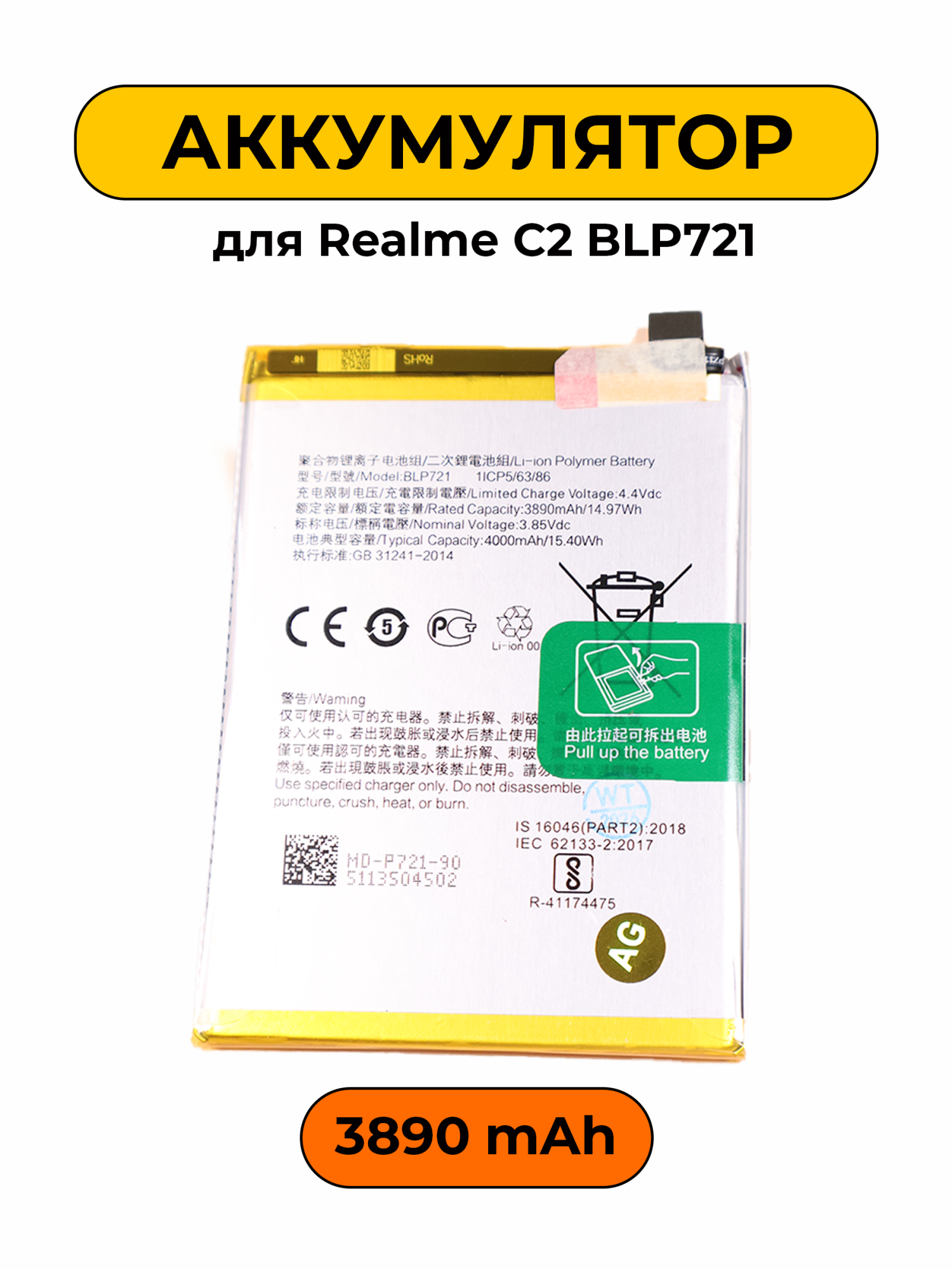 —Аккумулятор для Realme C2 BLP721 3890 мАч батарея
